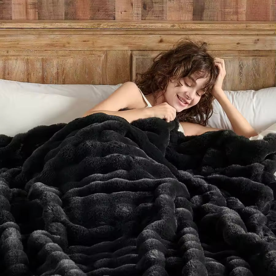 Rabbit Faux Fur Blanket - Ultra Soft Plush Wave Texture